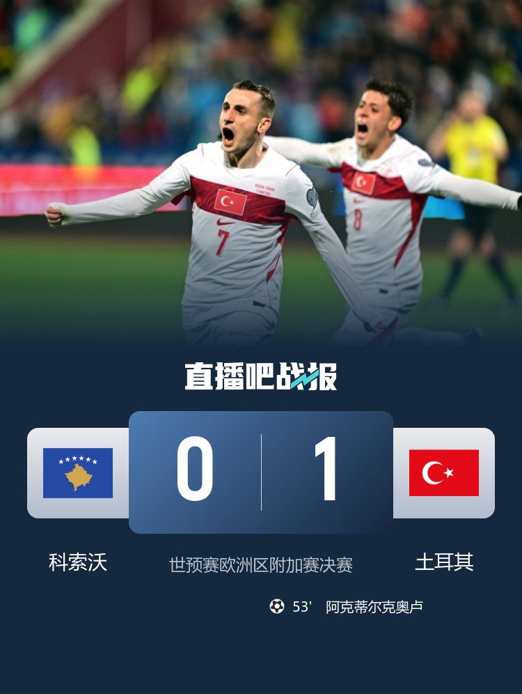 时隔24年!土耳其1-0科索沃晋级世界杯正赛 阿克蒂尔克奥卢制胜球